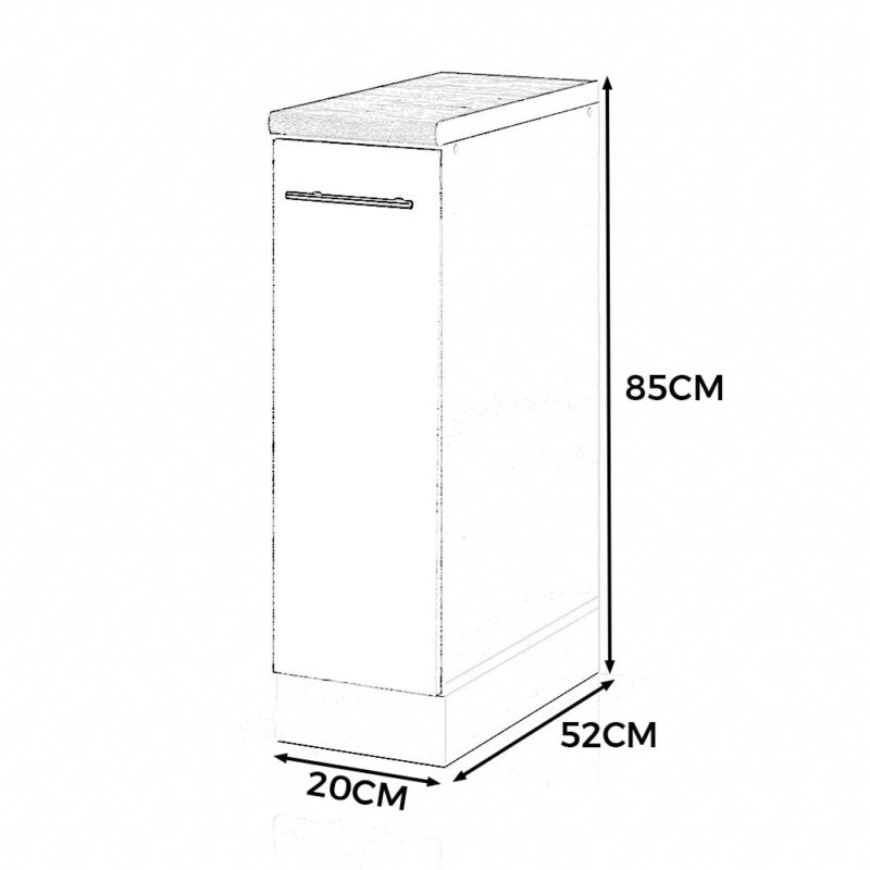 - Wymiary: Szerokość 20 cm x Głębokość 52 cm x Wysokość 85 cm – perfekcyjne wymiary dla efektywnego wykorzystania przestrzeni.