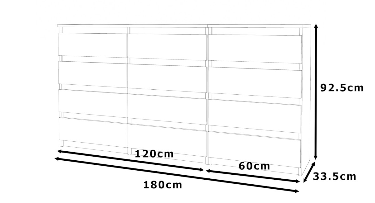 – korpus i fronty szuflad wykonane z solidnej płyty wiórowej laminowanej o matowym wykończeniu, odpornej na uszkodzenia i zarysowanie,
