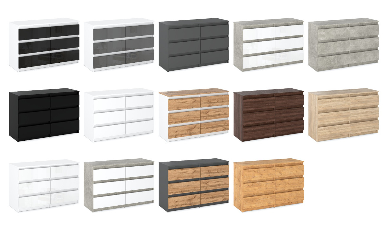 -w zależności od wyboru kolorystyki komody, szuflady wyposażone w prowadnice rolkowe lub kulkowe, dające gwarancję bezawaryjnego i przyjemnego użytkowania mebla,