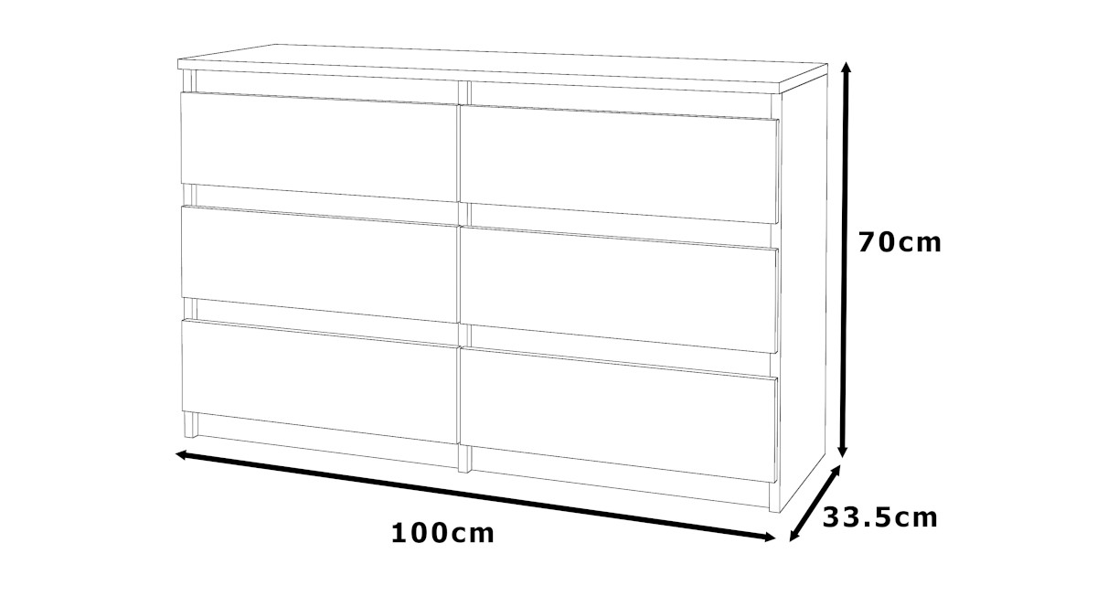 – komoda o wymiarach 100 × 33,5 x 70 cm,