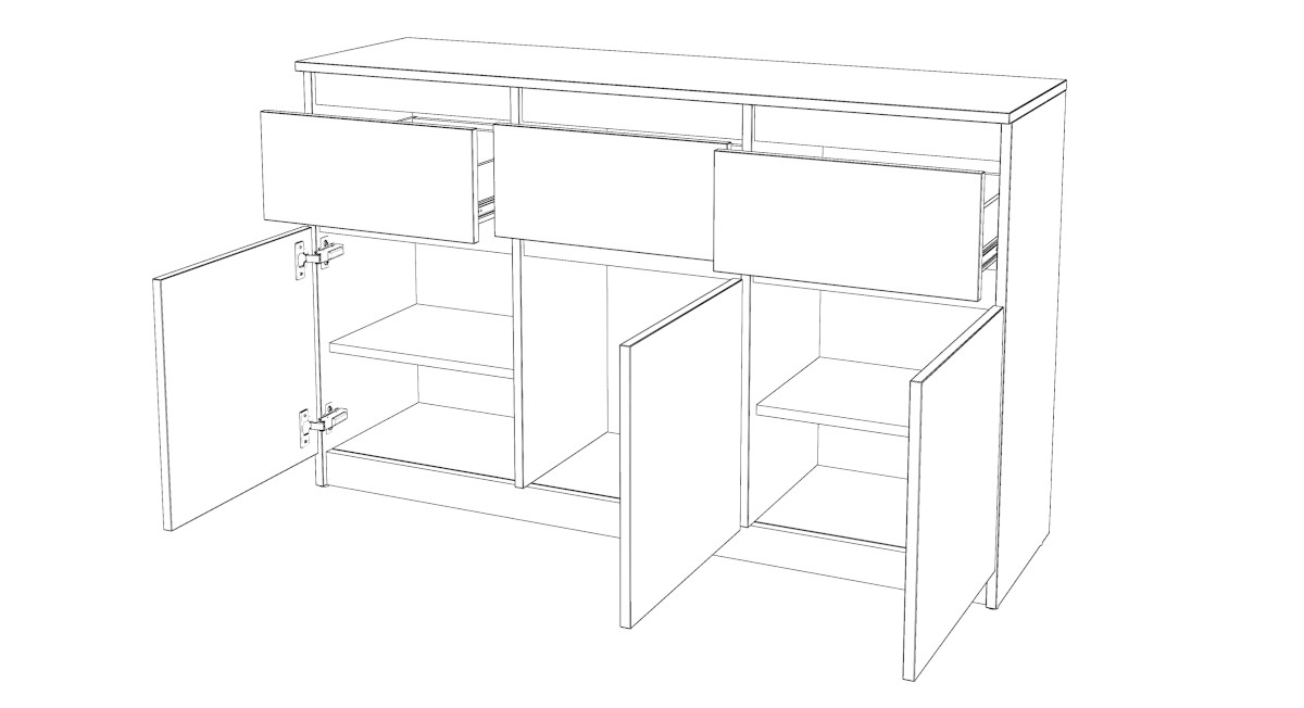 – korpus i fronty mebla wykonane z wysokogatunkowej laminowanej płyty wiórowej o dużej odporności na uszkodzenia i zadrapania,