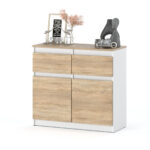 Komoda Hugo z 8 szufladami na bialym tle z korpusem w kolorze bialy mat, blatem w kolorze dab wotan i frontami w kolorze dab wotan