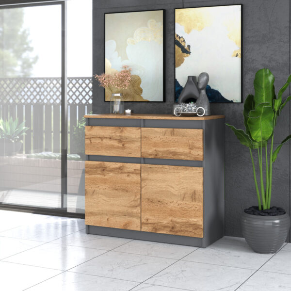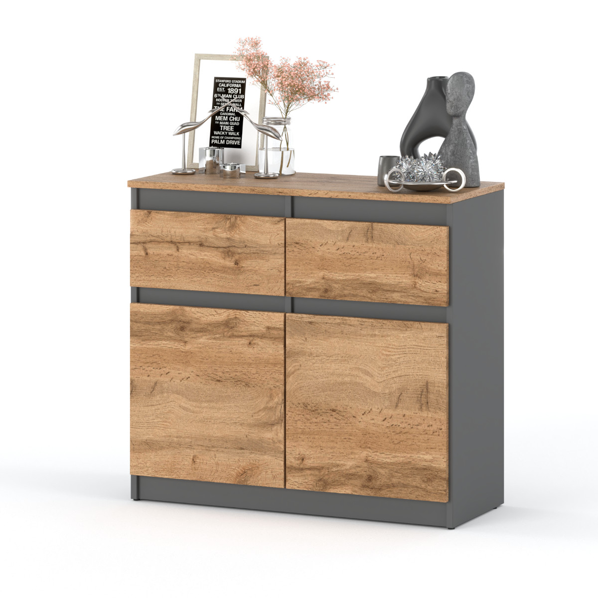 Zestaw Hugo 46 Komody z 10 szufladami 160cm na bialym tle z korpusem w kolorze dab lancelot i frontami w kolorze dab lancelot