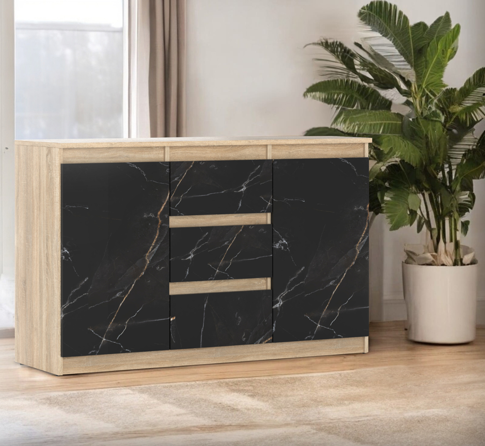Szafa Przesuwna Z Lustrem 140cm HANKUS Garderoba Dąb Lefkas Czarny Mat