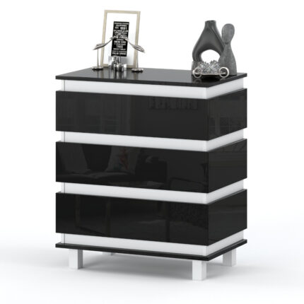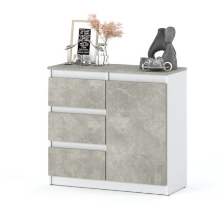 Komoda Hugo z 6 szufladami na bialym tle z korpusem w kolorze beton atelier i frontami w kolorze bialy polysk