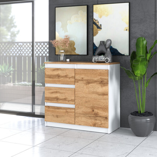 Zestaw Hugo 46 Komody z 10 szufladami 160cm na bialym tle z korpusem w kolorze dab lancelot i frontami w kolorze dab lancelot