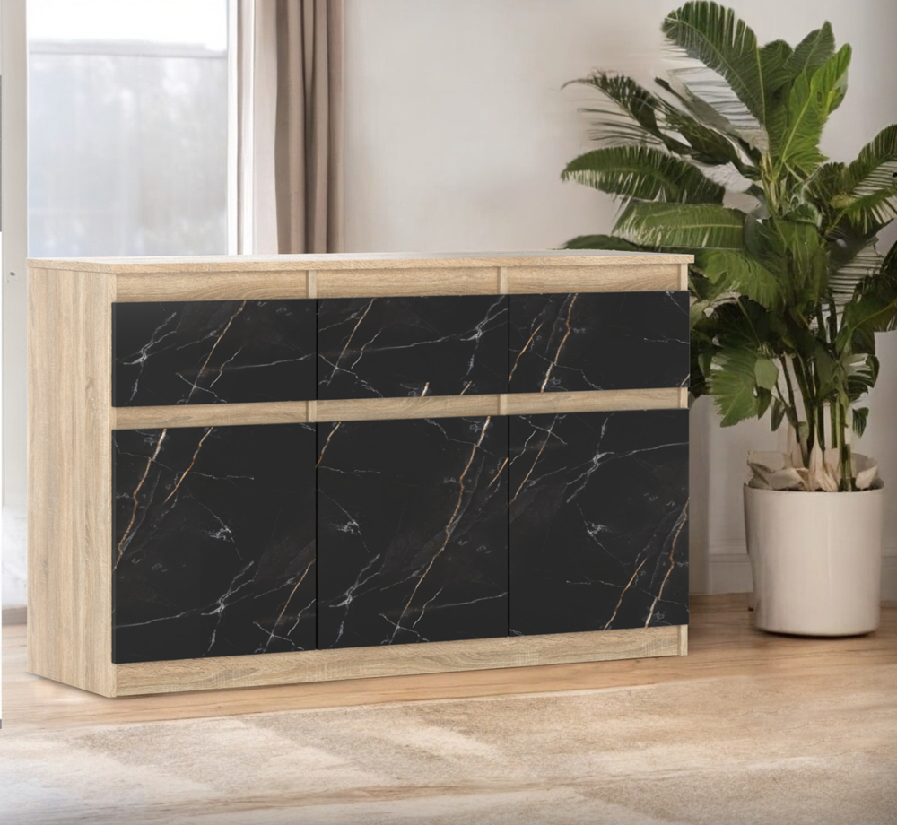 Szafa Przesuwna Z Lustrem 140cm HANKUS Garderoba Dąb Lefkas Czarny Mat