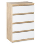 Komoda Hugo z 8 szufladami na bialym tle z korpusem w kolorze bialy mat, blatem w kolorze dab wotan i frontami w kolorze dab wotan
