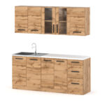Zestaw Mebli Kuchnnych Remino 2,6m na bialym tle z korpusem w kolorze bialy mat i frontach w kolorze dab wotan bialy mat