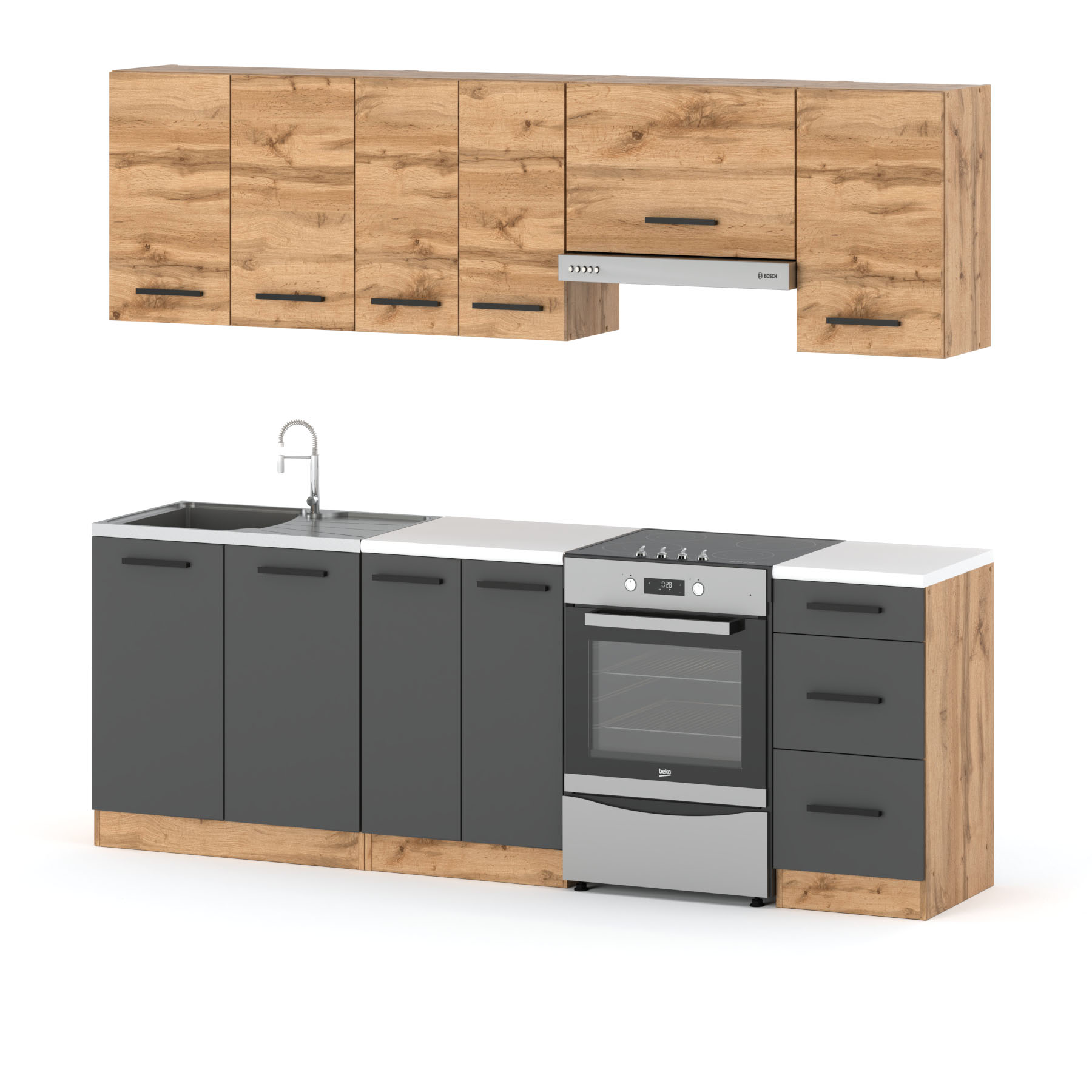 Meble Kuchenne Mokka 2.4m Szafki Kuchenne Biały Szary Wotan