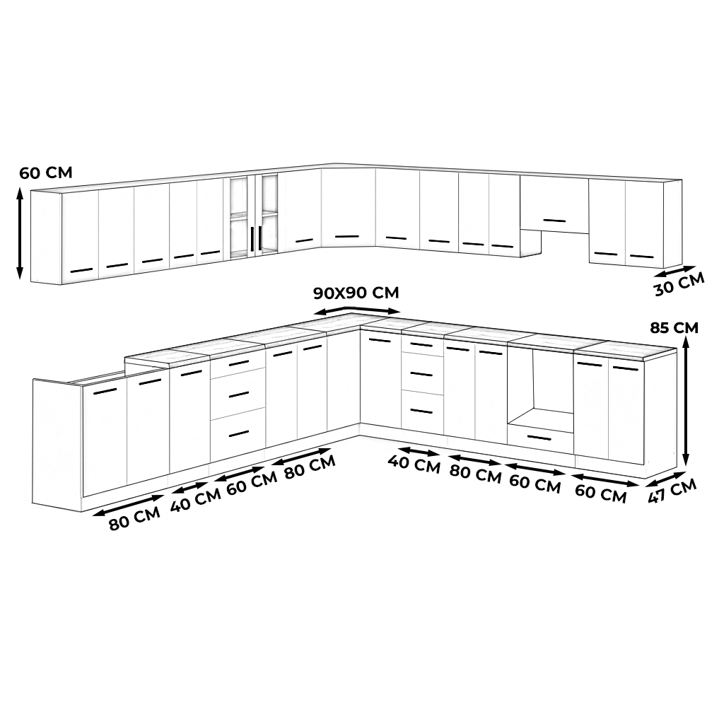 Kuchnia Narożna Danka 3.2m Szafki Kuchenne Biały Wotan Biały
