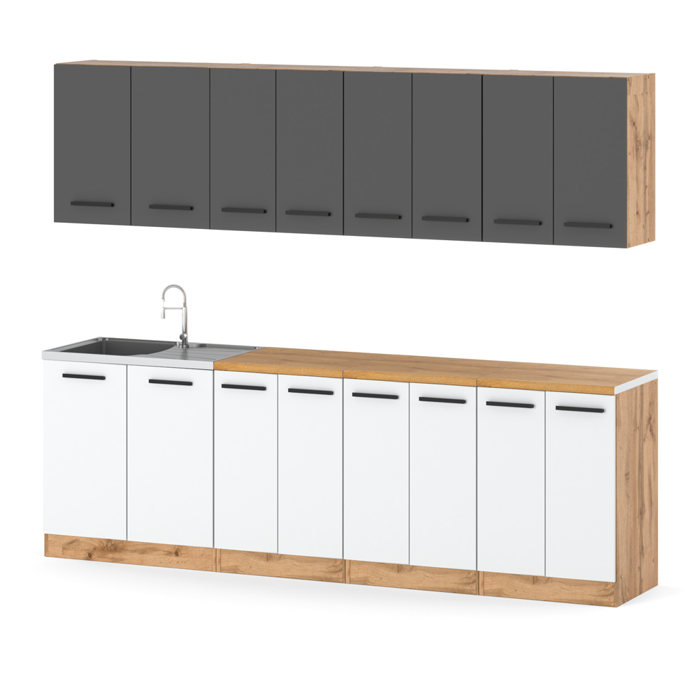 Meble Kuchenne Premium AGATA 2.2m Szafki Kuchenne Szary Dąb Wotan