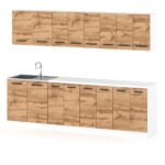 Zestaw Mebli kuchennych Mokka 2,4m na bialym tle z korpusem w kolorze bialym i frontami w kolorze bialy mat dab wotan