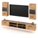 Zestaw Hugo 46 Komody z 10 szufladami 160cm na bialym tle z korpusem w kolorze dab lancelot i frontami w kolorze dab lancelot