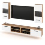 Szafa Hugo na bialym tle z korpusem w kolorze bialy mat i frontami w kolorze dab wotan