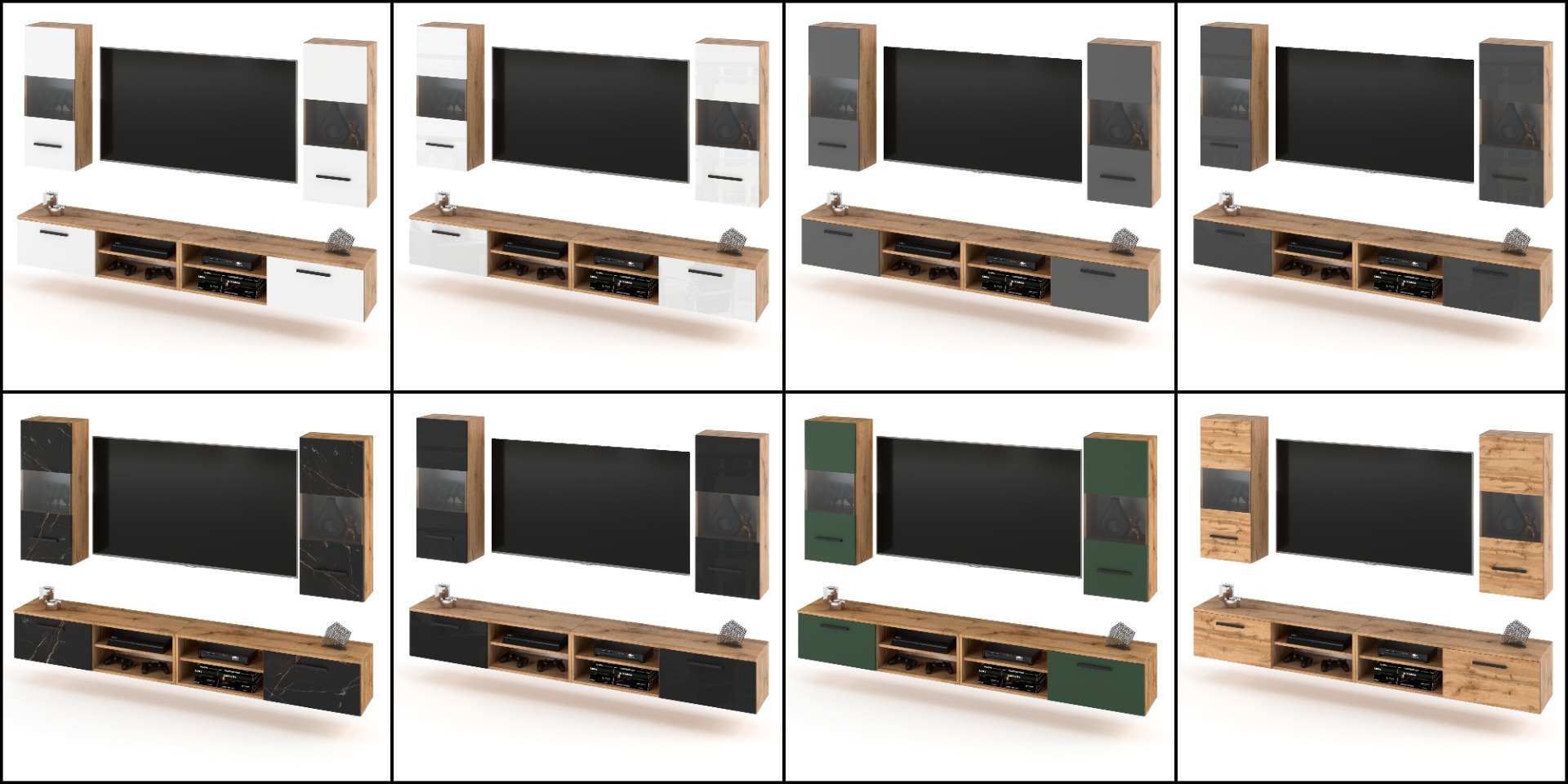 Zestaw Hugo 84 Komody z 12 szufladami na bialym tle z korpusem w kolorze beton atelier i frontami w kolorze bialy mat