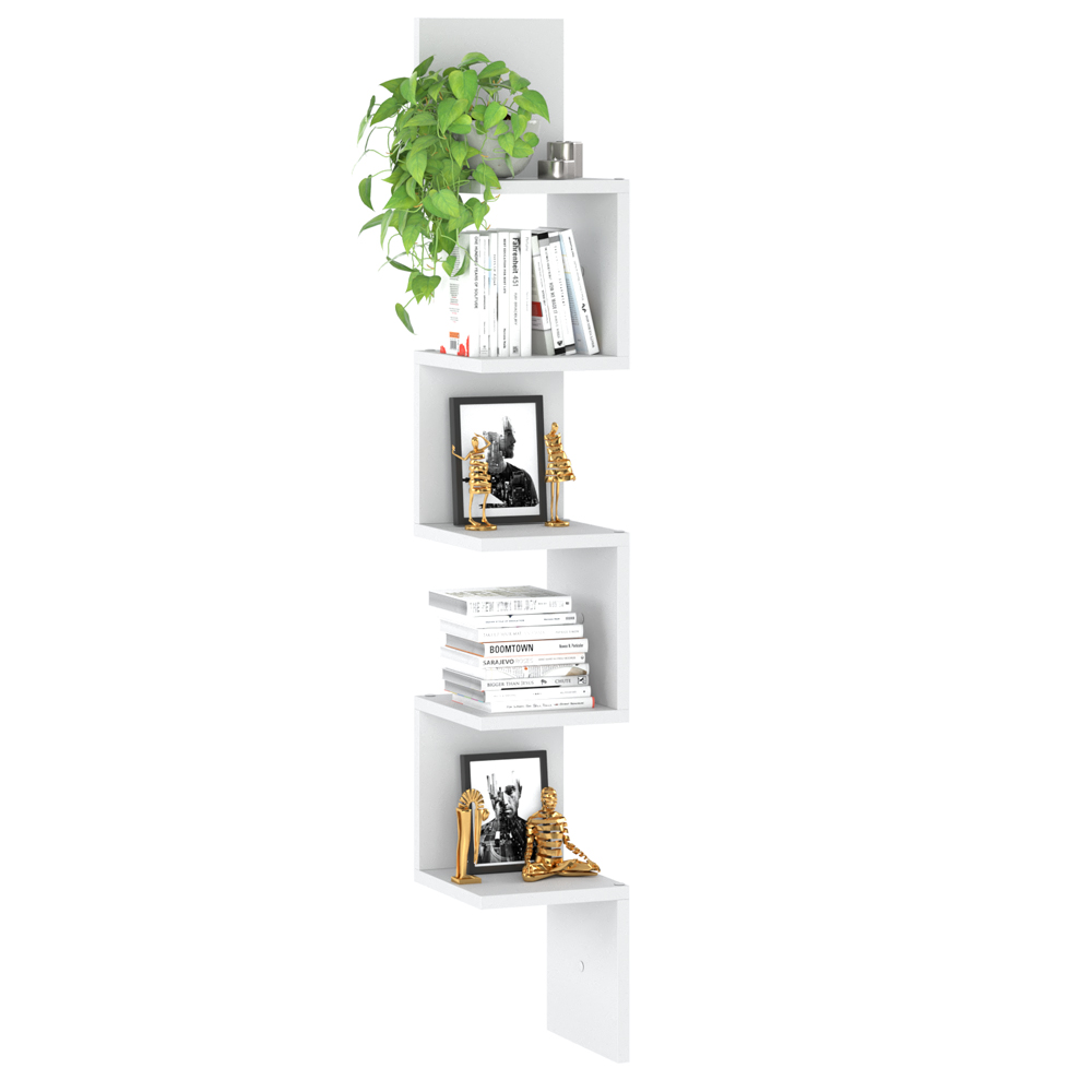 Regał Olivier w stylu skandynawskim z 4 półkami w kolorze biały mat dąb wotan na białym tle