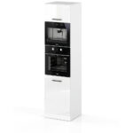 Szafka kuchenna pod zabudowę piekarnika o szerokości 60cm w kolorze korpus biały mat fronty szaty mat z blatem w kolorze dąb lancelot