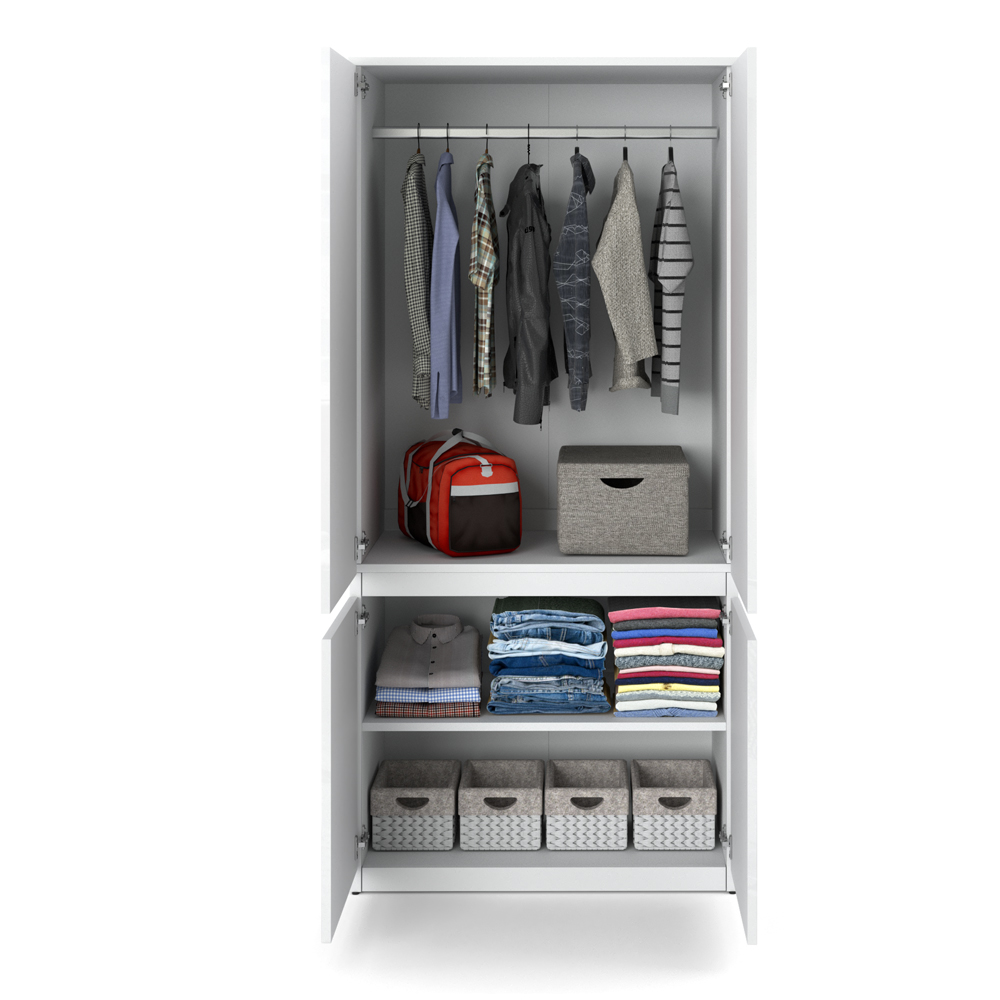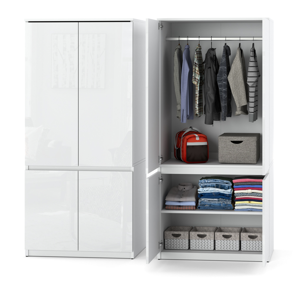 Szafa Hugo na bialym tle z korpusem w kolorze bialy mat i frontami w kolorze bialy polysk