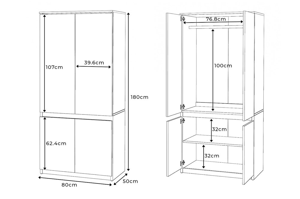 Szafa 80cm Posti Garderoba Do Sypialni Z Półkami Drążek Biały Mat