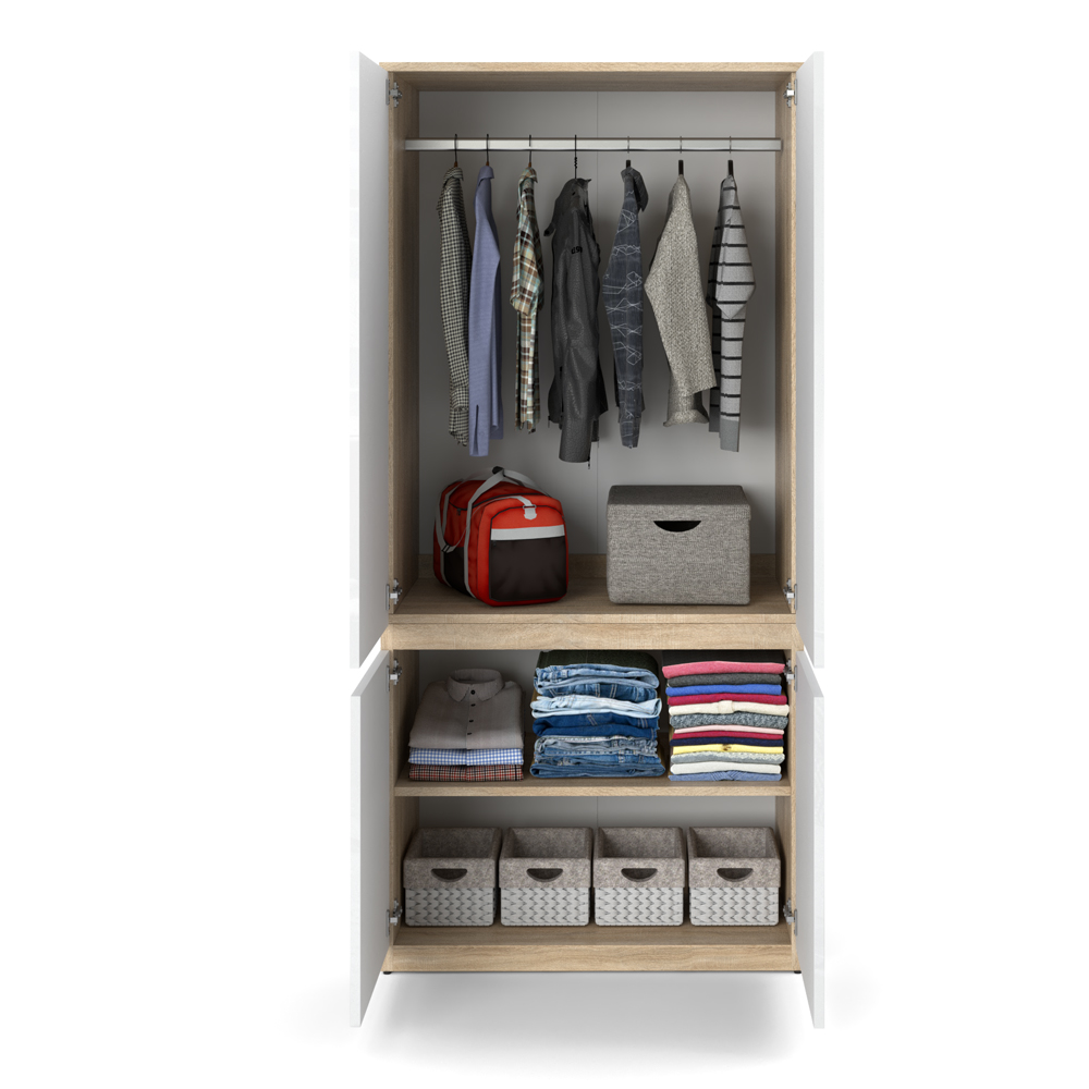 Szafa Hugo na bialym tle z korpusem w kolorze dab sonoma i frontami w kolorze dab sonoma