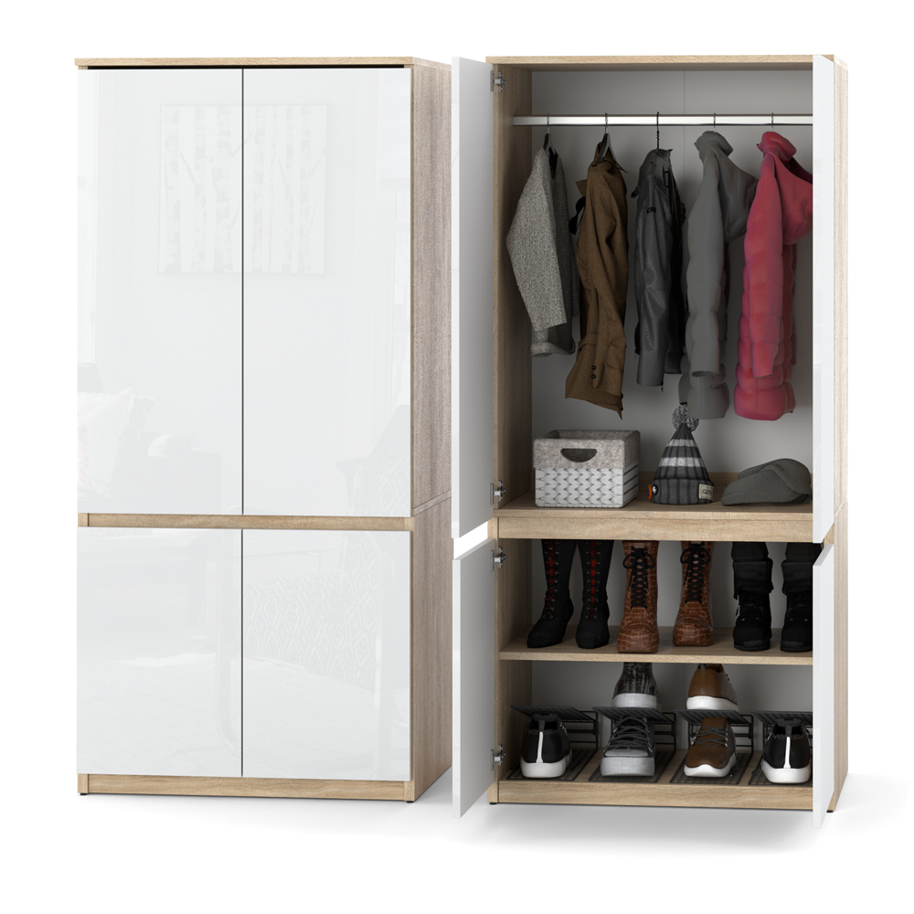Duża szafa Posti garderoba w kolorze biały mat dąb sonoma idealna do sypialni zdjęcie na białym tle