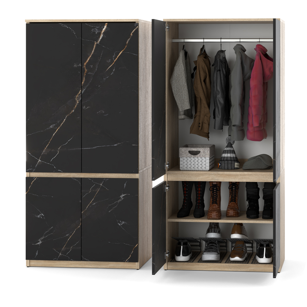 Duża szafa Posti garderoba w kolorze dąb wotan szary mat idealna do sypialni zdjęcie na białym tle