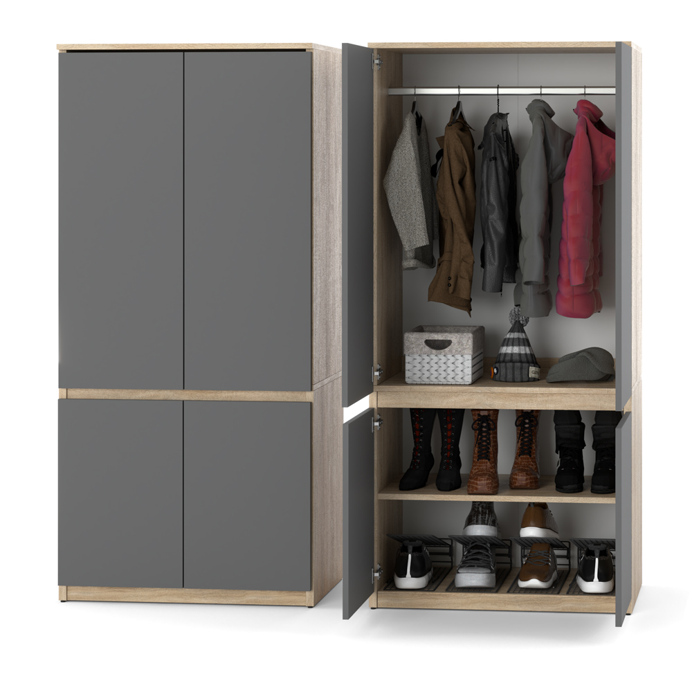 Szafa Hugo na bialym tle z korpusem w kolorze szary mat i frontami w kolorze dab wotan