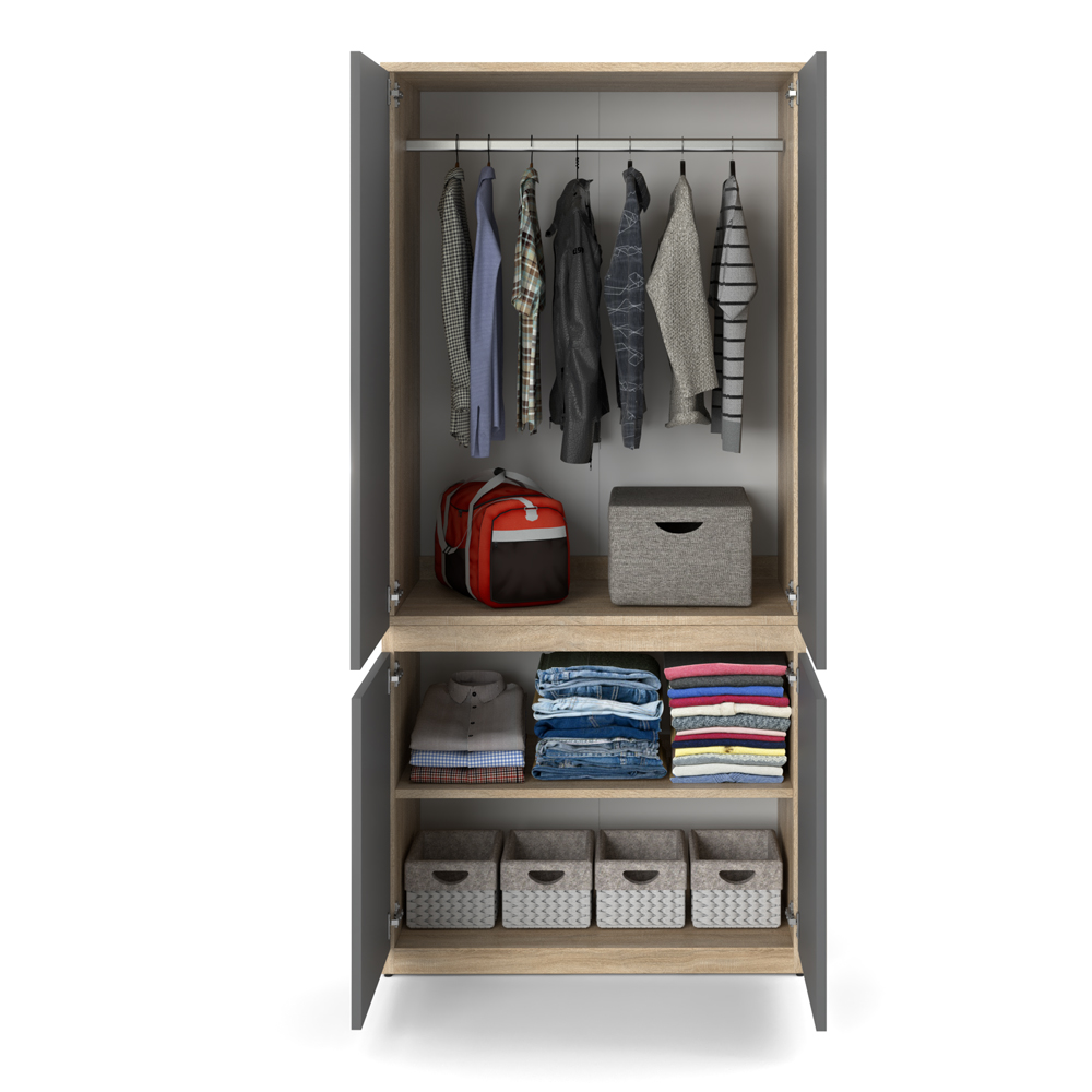 Szafa 80cm Posti Garderoba Do Sypialni Z Półkami Drążek Szary Mat