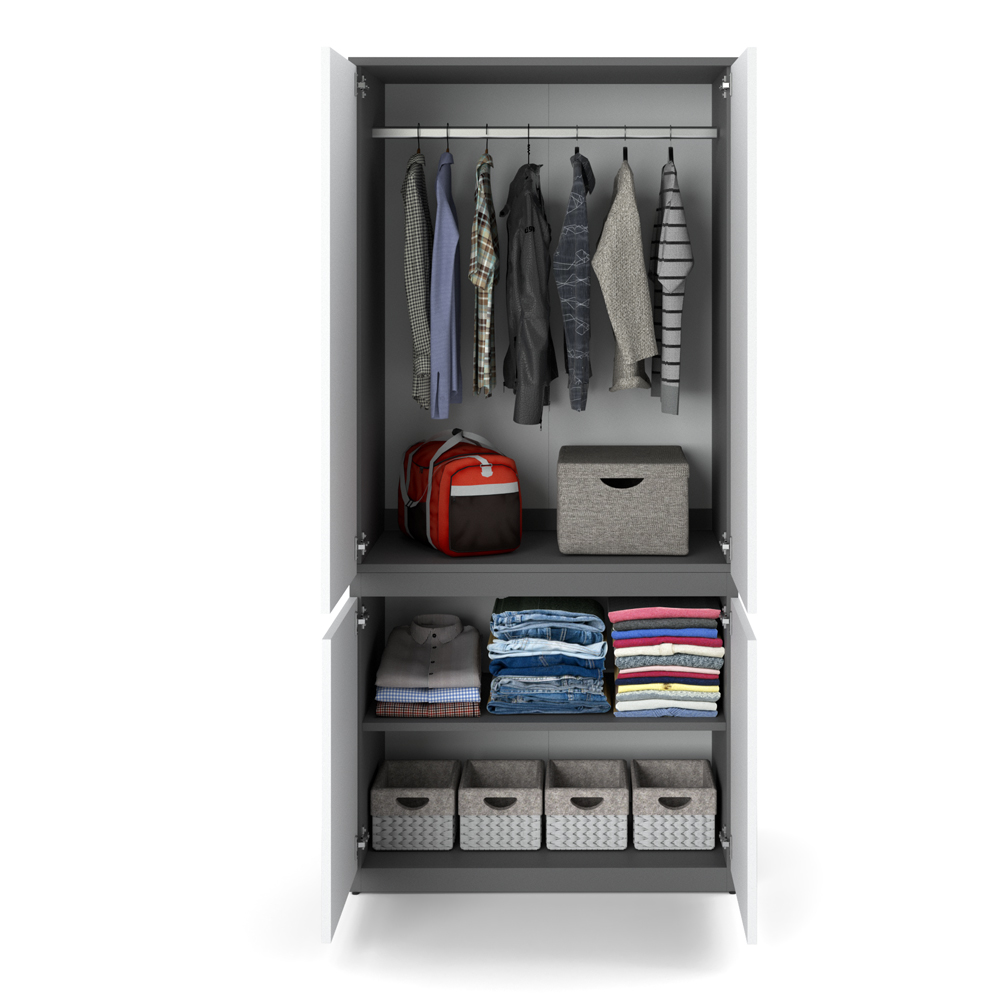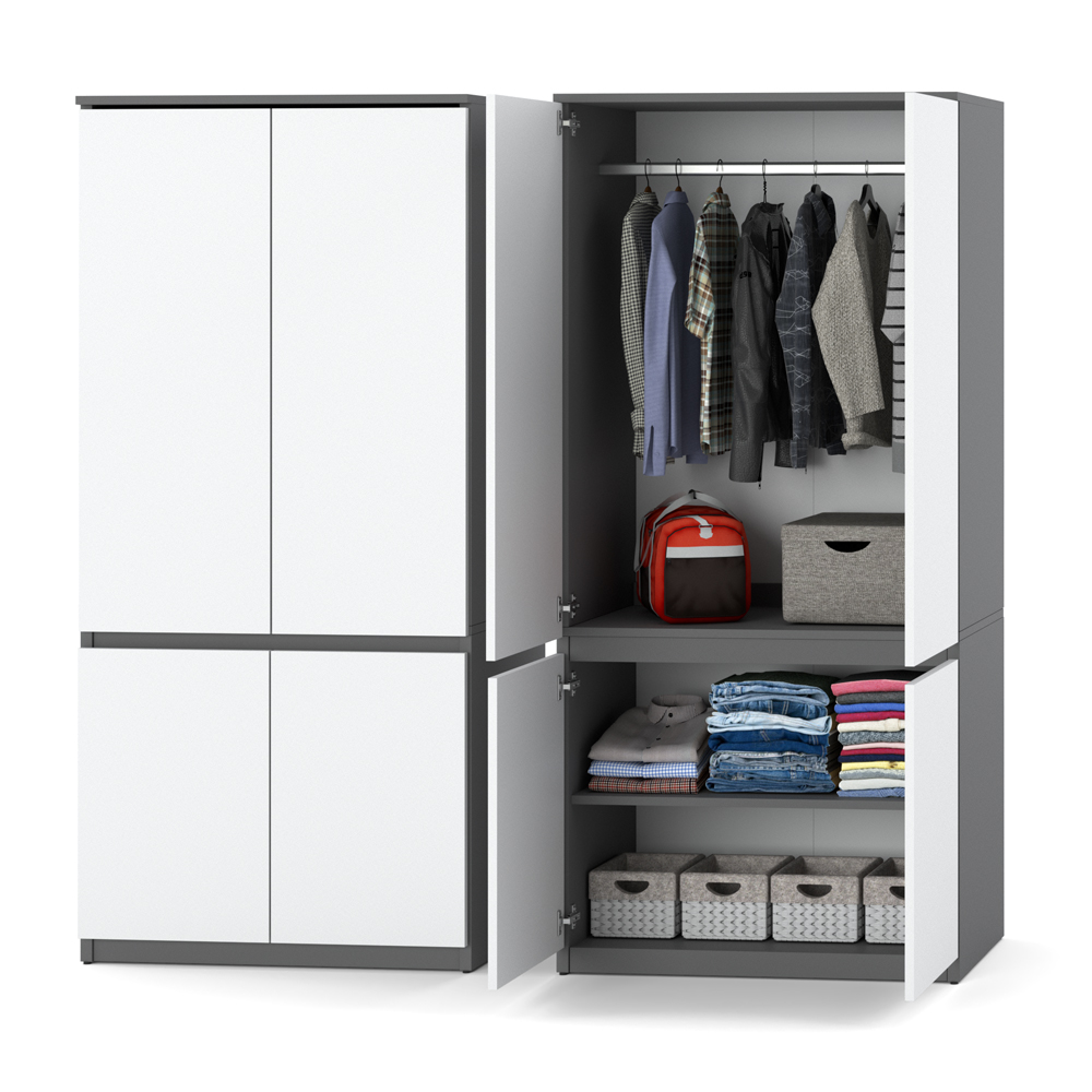Szafa Hugo na bialym tle z korpusem w kolorze szary mat i frontami w kolorze dab wotan