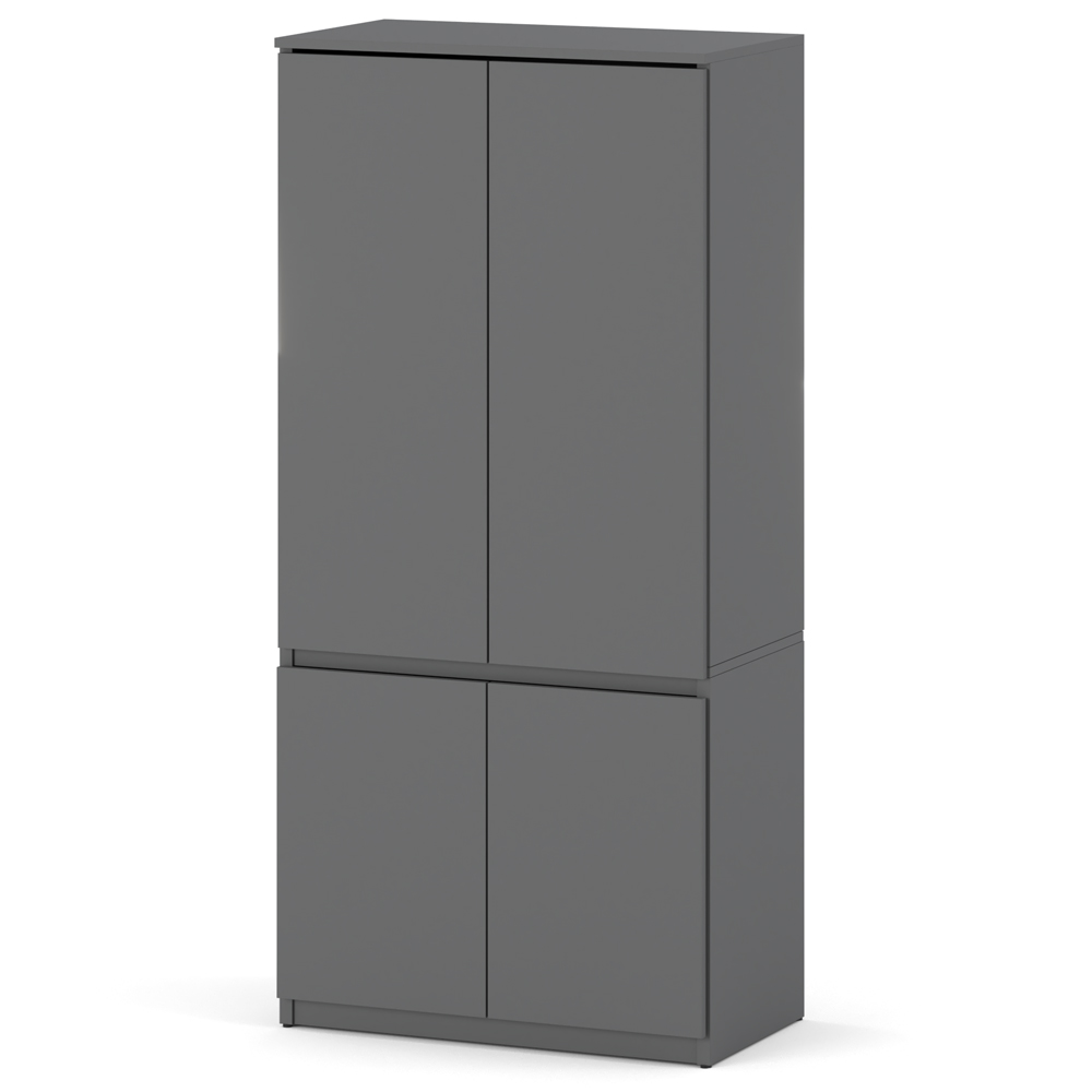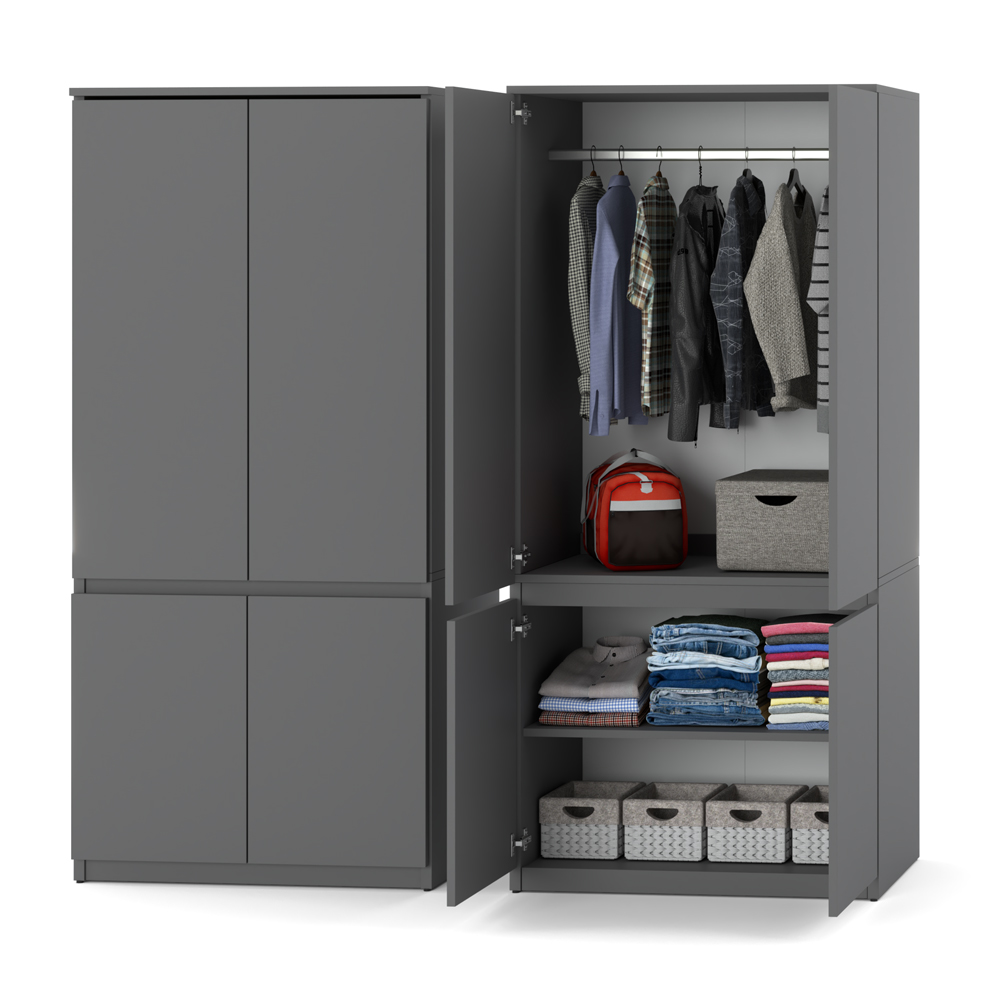 Szafa Hugo na bialym tle z korpusem w kolorze szary mat i frontami w kolorze dab wotan