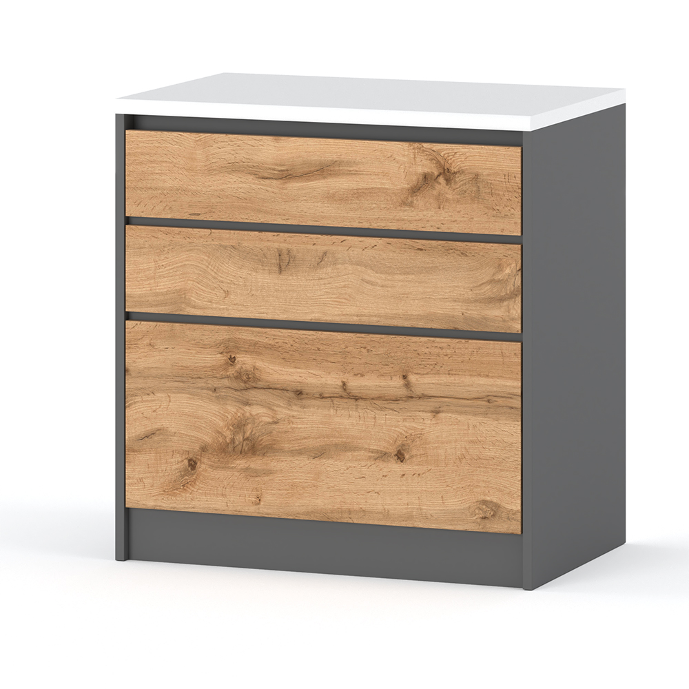 Szafka Kuchenna Bella Stojąca 80cm 3 Szuflady to bezuchwytowa szafka stojąca, która została starannie zaprojektowana i wyposażona w trzy pojemne szuflady. Dzięki temu doskonale sprawdzi się w nowoczesnych aranżacjach kuchennych. Co więcej, solidna konstrukcja oraz nowoczesny design sprawiają, że Bella łączy elegancję z praktycznością, spełniając oczekiwania nawet najbardziej wymagających użytkowników.