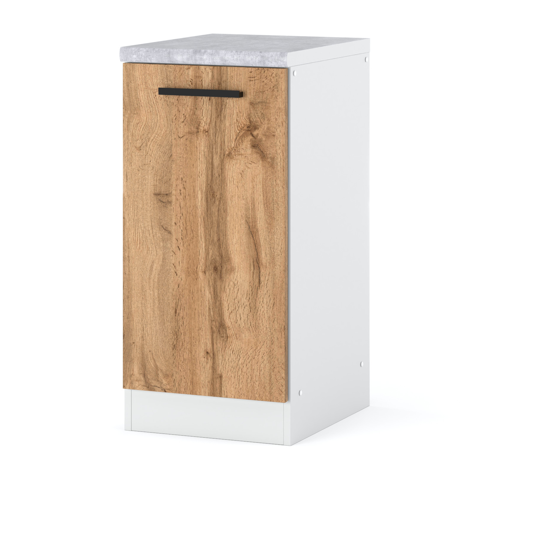 Zestaw Mebli Kuchnnych Remino 2,6m na bialym tle z korpusem w kolorze bialy mat i frontach w kolorze dab wotan bialy mat