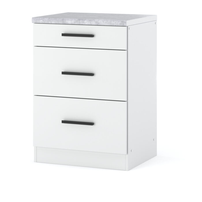 Zestaw Mebli Kuchnnych Remino 2,6m na bialym tle z korpusem w kolorze bialy mat i frontach w kolorze bialy mat szary mat
