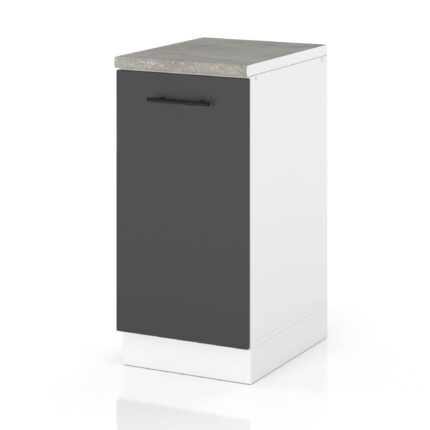 Szafka kuchenna pod zabudowę piekarnika o szerokości 60cm w kolorze korpus biały mat fronty szary mat z blatem w kolorze biel arktyczna