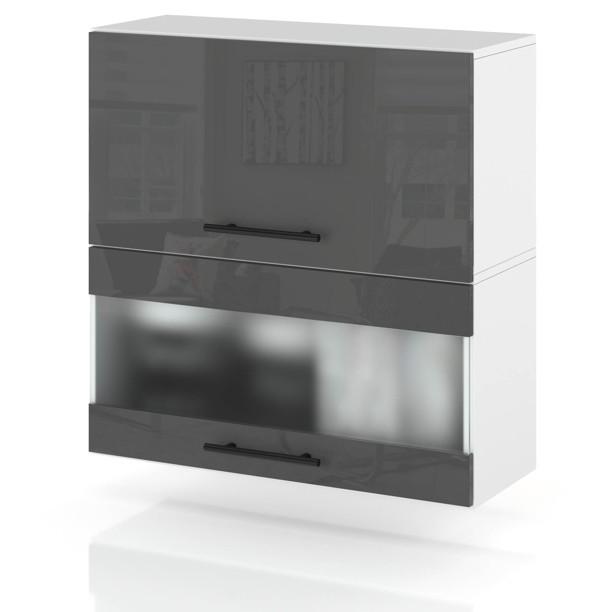 Szafka kuchenna pod zabudowę piekarnika o szerokości 60cm w kolorze korpus biały mat fronty szary mat z blatem w kolorze beton