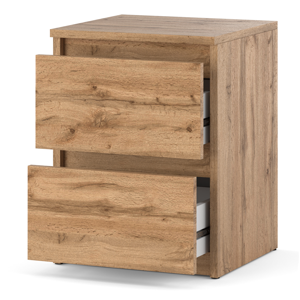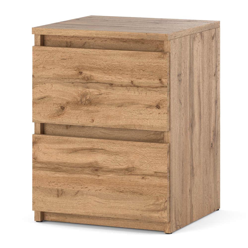 Szafka Nocna 2 Szuflady HUGO Stolik Dąb Wotan Biały Połysk