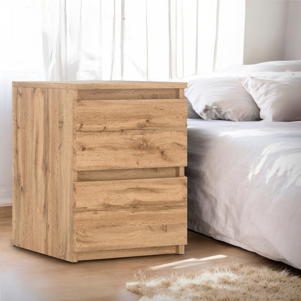 Szafka Nocna 2 Szuflady HUGO Stolik Dąb Sonoma Biały Mat