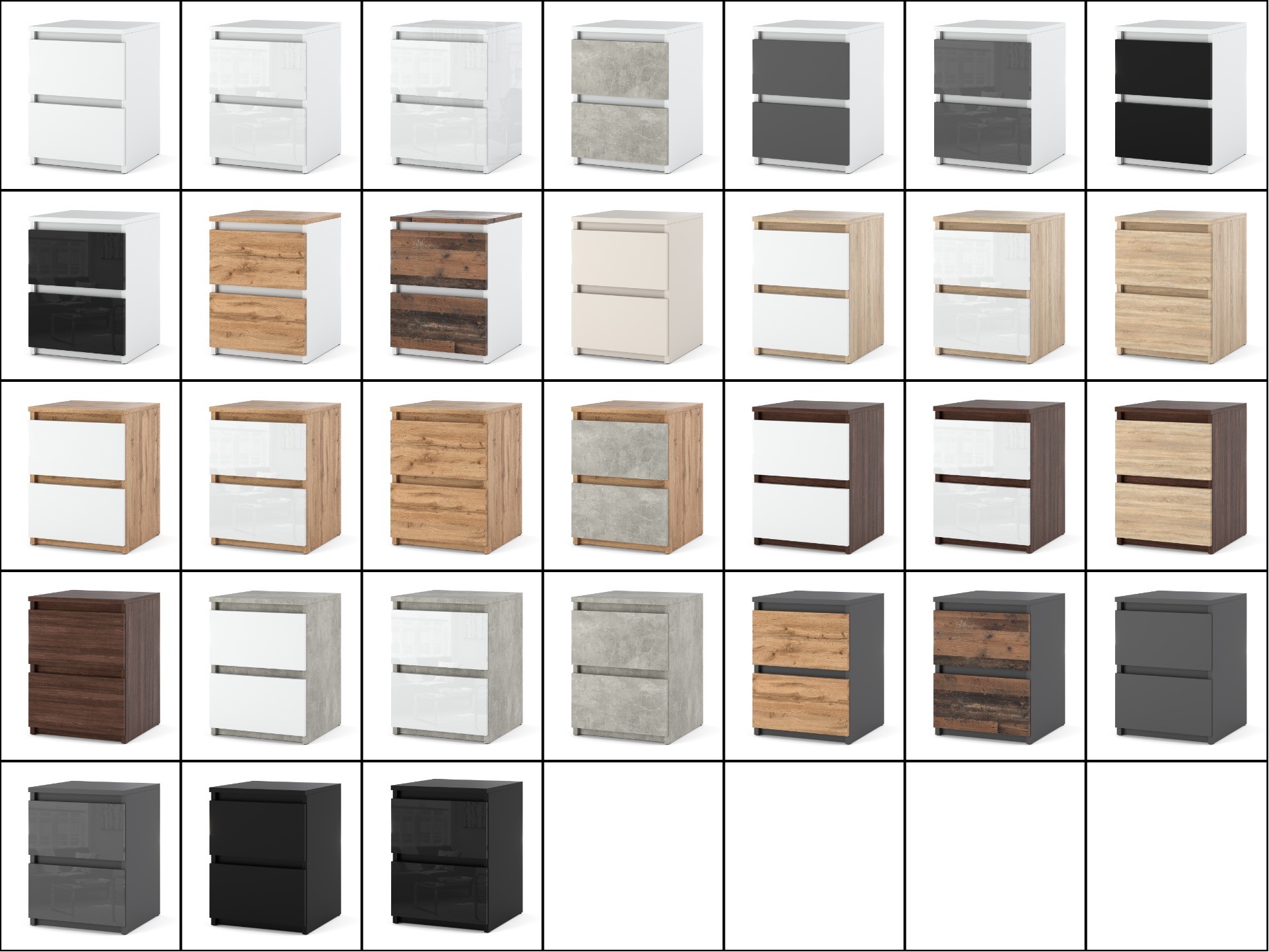 Szafka Nocna 2 Szuflady HUGO Stolik Dąb Wenge Biały Połysk
