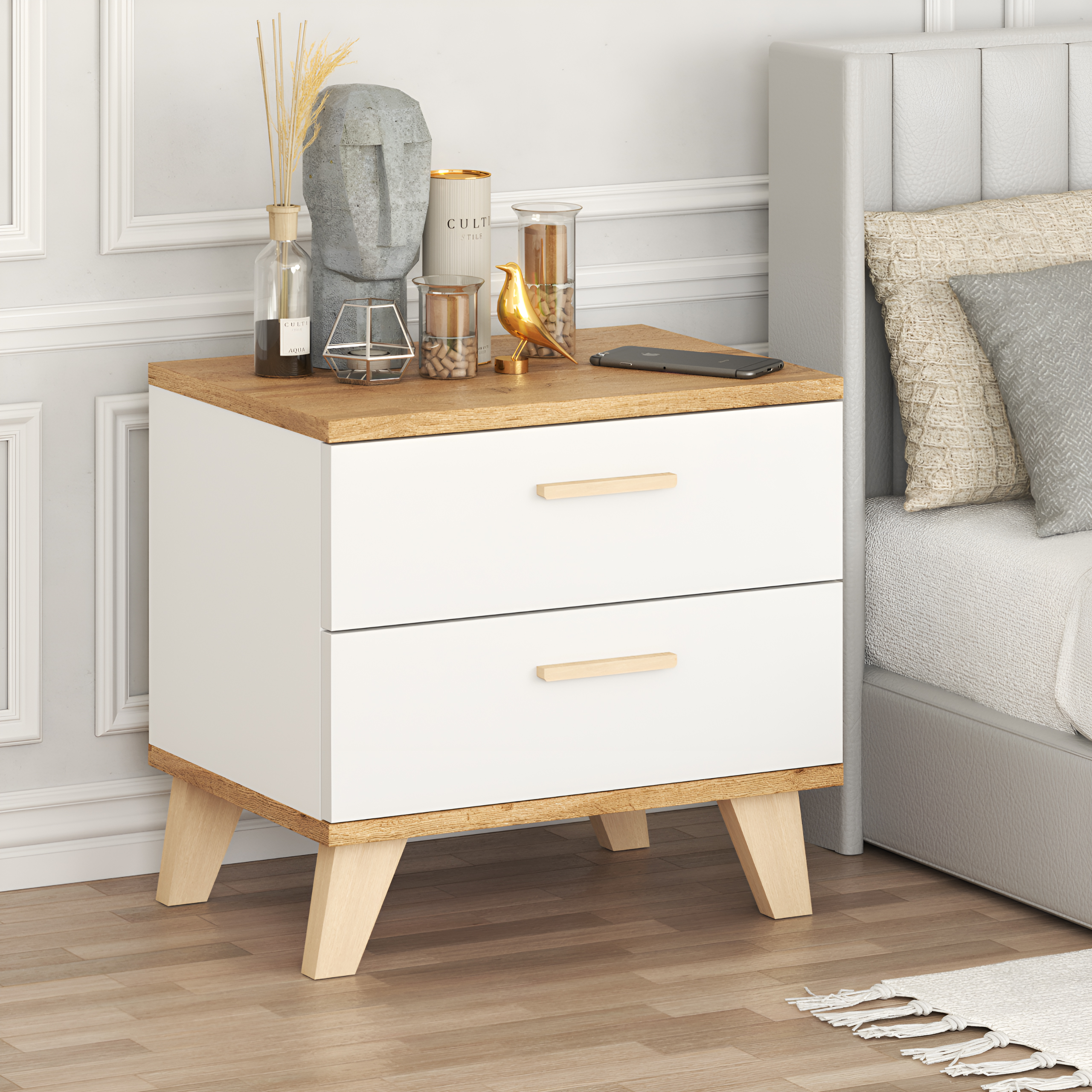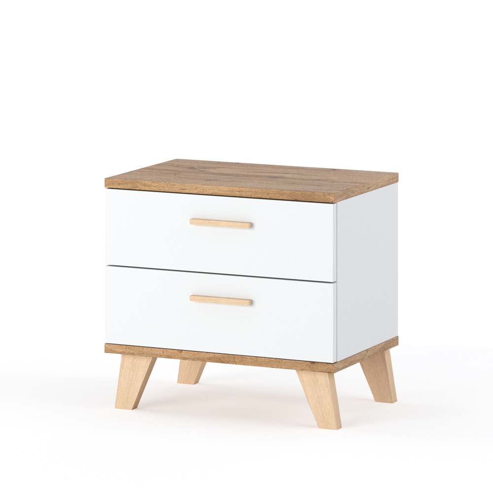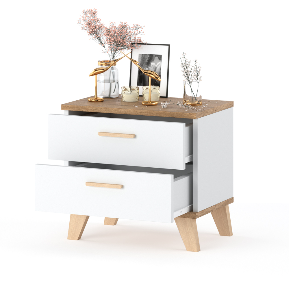 Szafka Nocna 2 Szuflady HUGO Stolik Dąb Wotan Biały Mat