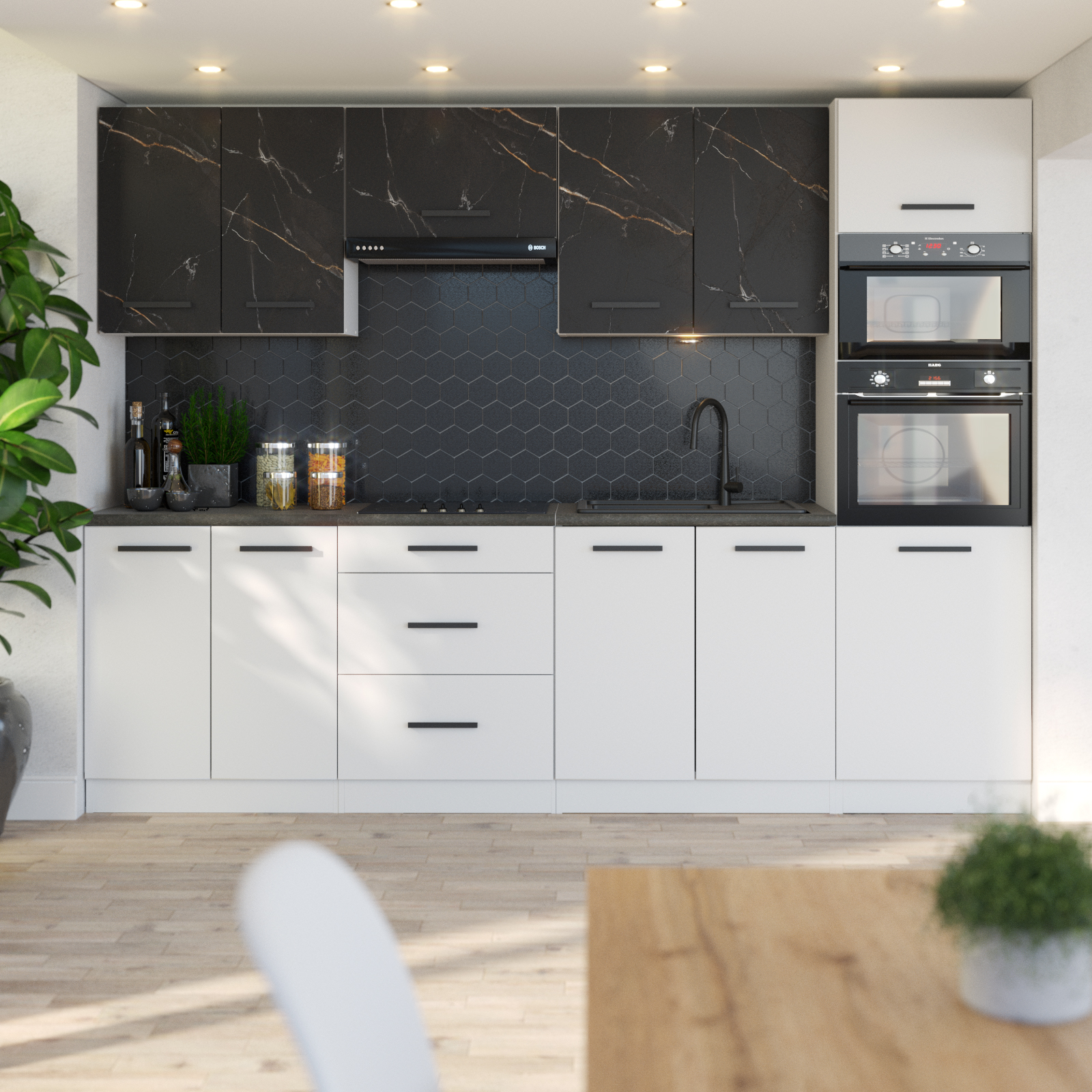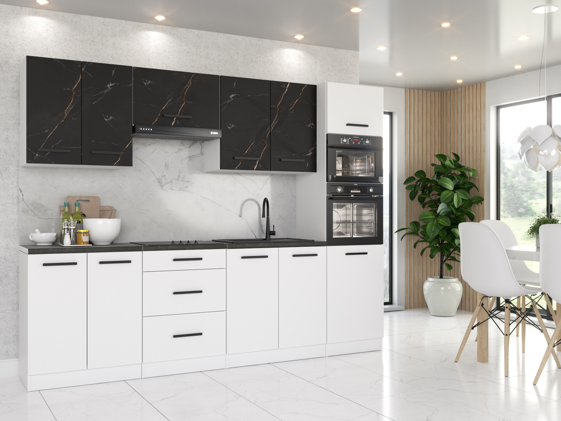 • Białe Meble Kuchenne Z Czarnymi Uchwytami