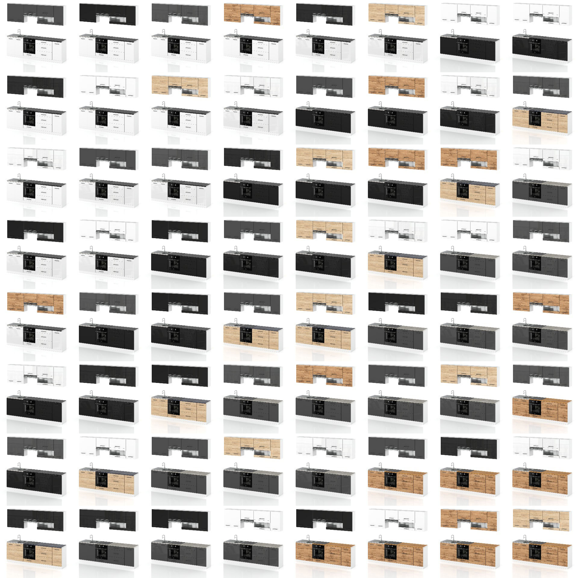 - Kolorystyka: Zestaw dostępny w 64 wariantach kolorystycznych. Istnieje możliwość mieszania kolorystyk szafek górnych oraz dolnych