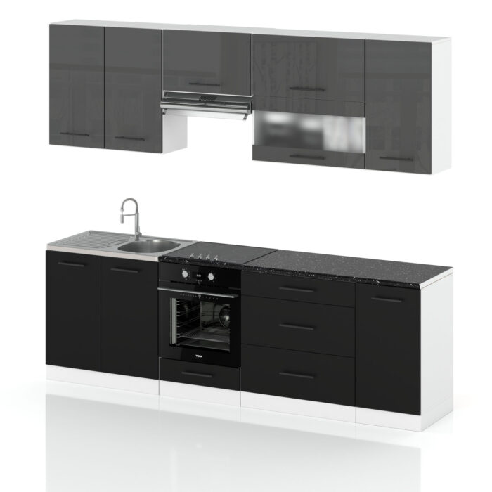 Meble Kuchenne Remino 2.6m Szafki Kuchenne Biały Biały Szary