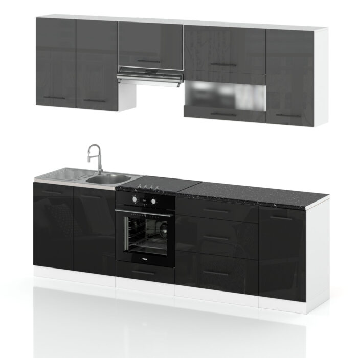 zestaw kuchenny marocco spremium 260cm z korpusem w kolorze białym i frontami w kolorze biały mat i szary połysk