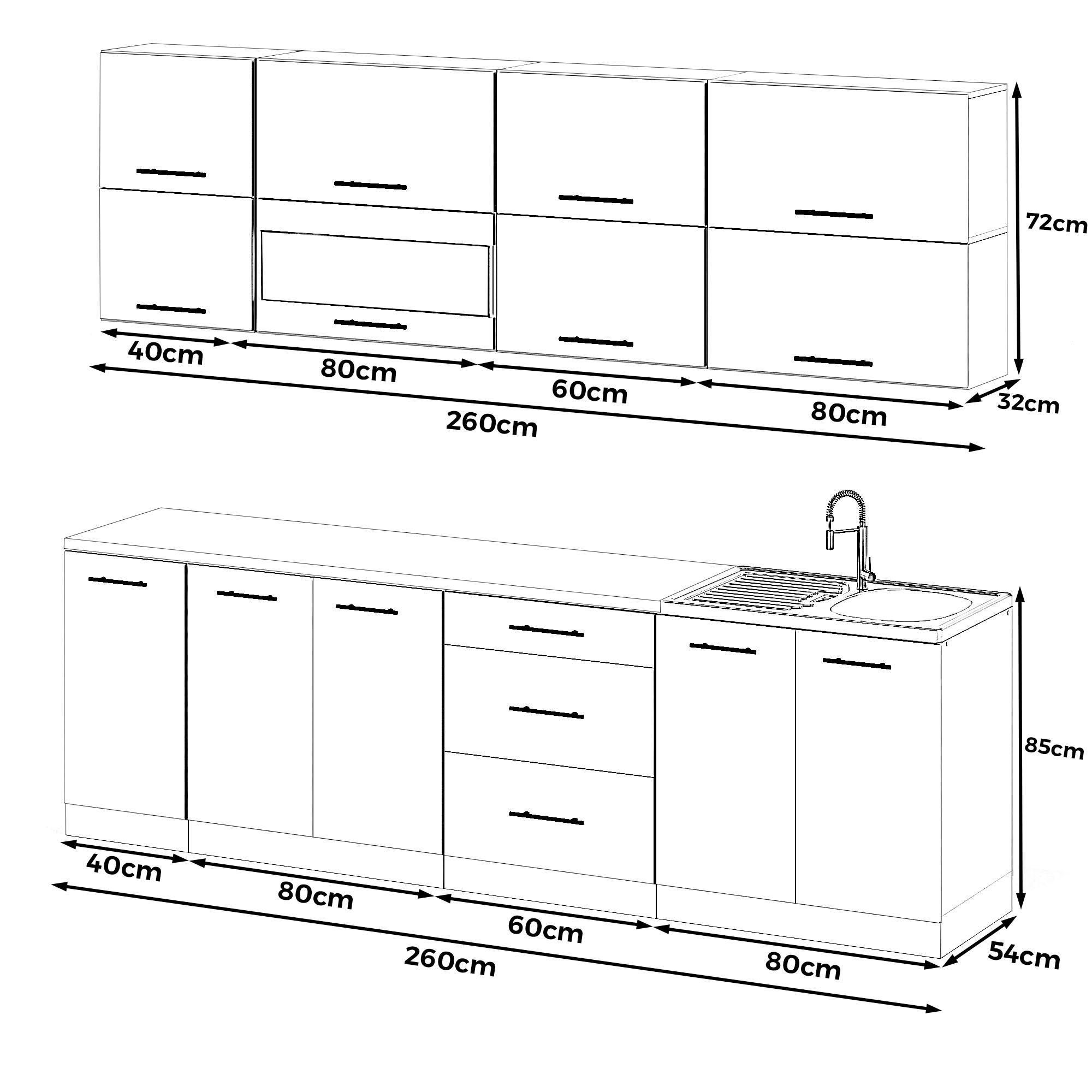 Specyfikacja Zestawu Mebli Kuchennych Z Blatem 2.6m Robo Lux